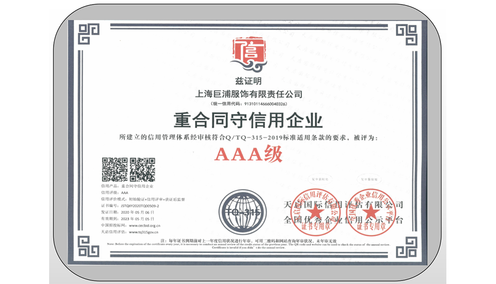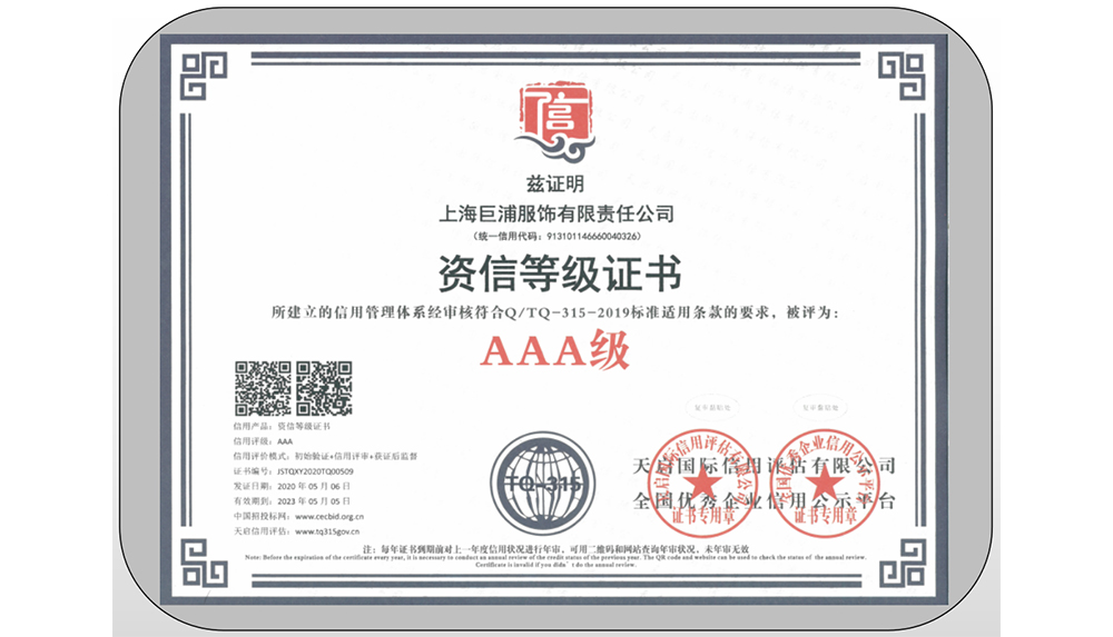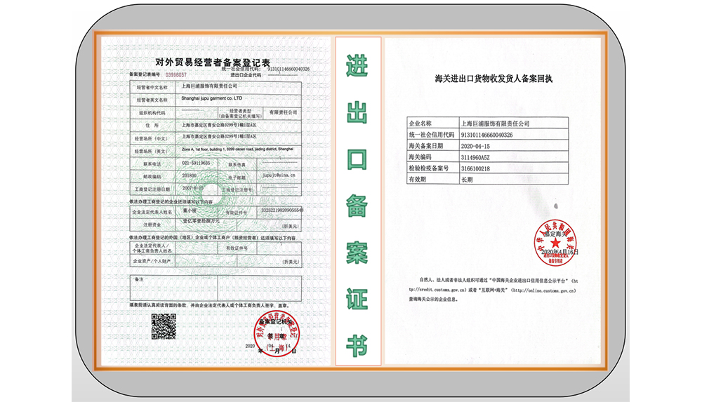 巨浦公司創建于2007年,經過努力發展從一期工廠立足于中國國際之都上海, 上海市嘉定區曹安公路3299號2007年建成投產,到現公司業務已遍布國內外市場,生產設備和設計能力等都已與國際接軌,打開目前形成了服裝外貿與國內品牌全面發展的格局,公司有日本和韓國歐洲優秀專家及工程設計人員與生產為一體。二期工廠建立于中國山東省棗莊市東盛工業區6號,第一階段已于2010年3月竣工投產,現年產能達260多萬套,待第二階段和第三階段全部建成投產后,年總產能將達500多萬套,我們相信同過努力上海巨浦服飾有限責任公司,山東巨浦服飾有限公司,棗莊市依行天下服飾有限公司共同組成,會成為棗莊一顆璀璨奪目的工業明珠。